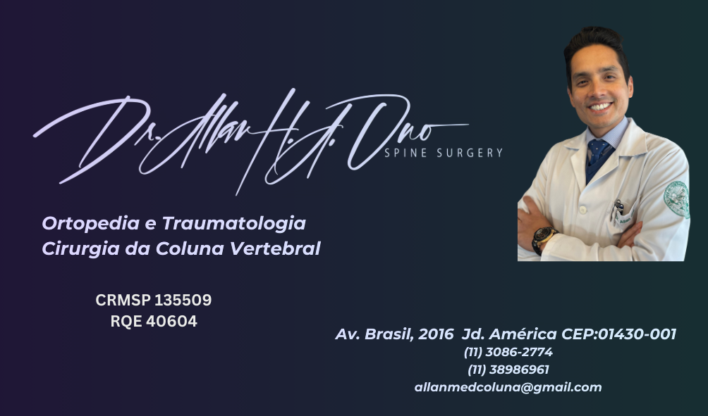 O Dr. Allan Ono é um ortopedista cirurgião de coluna pelo Instituto de Ortopedia do Hospital das Clínicas de São Paulo, membro da Sociedade Brasileira de Coluna e North American Spine Society, com mais de 10 anos de experiência na área.